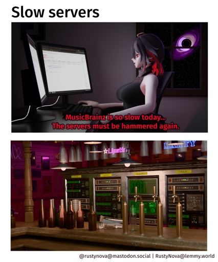 RustyNova@lemmy.worldEnglish · 21 days ago[RustyNova] Slow serversplus-squarelemmy.worldimagemessage-square0linkfedilinkarrow-up11arrow-down10