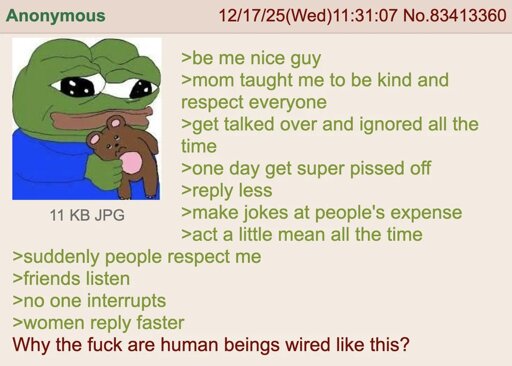 arrow-up1495arrow-down1imageAnon is a nice guysh.itjust.works🍹Early to RISA 🧉@sh.itjust.worksM to Greentext@sh.itjust.works · 2 months agomessage-square47linkfedilink