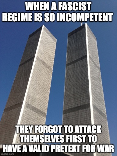 False. The Bush Admin wasn’t competent enough to plan a self-attack. They just managed to jump on a crisis (caused by their own ineptness) and use it to their benefit. And everyone went along with it for fear of being called a traitor.